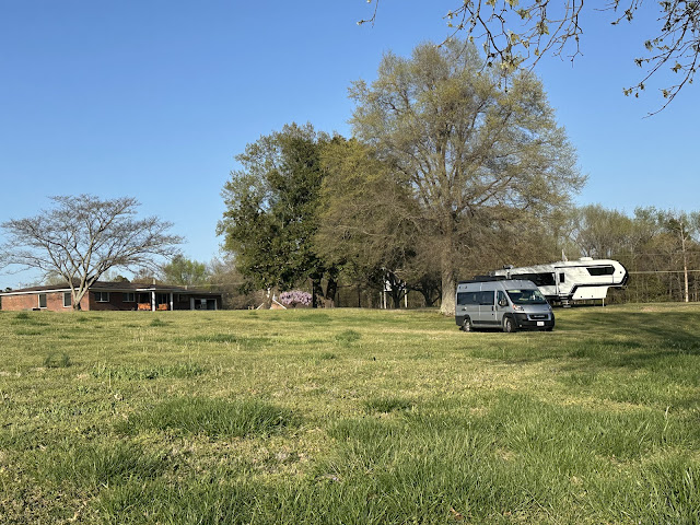 Our next Boondockers Welcome was a large lawn near a pond. Lovely setting. We arrived just before sunset.